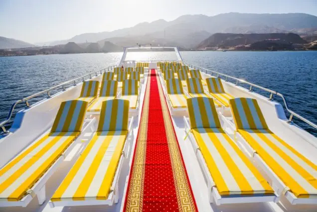 Насладитесь лучшим, что может предложить Красное море, с Elite Vip круиз! Катера ELITE VIP предлагают вам возможность исследовать необыкновенные пейзажи побережья Красного моря, наслаждаясь многочисленными преимуществами, включенными в ваш день: катера для круизов ELITE VIP — это, без преувеличения, самые роскошные прогулочные катера на Красном море.